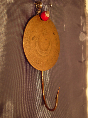 International currency flattened by electric plant coal trains and accessorized with fishing gear.